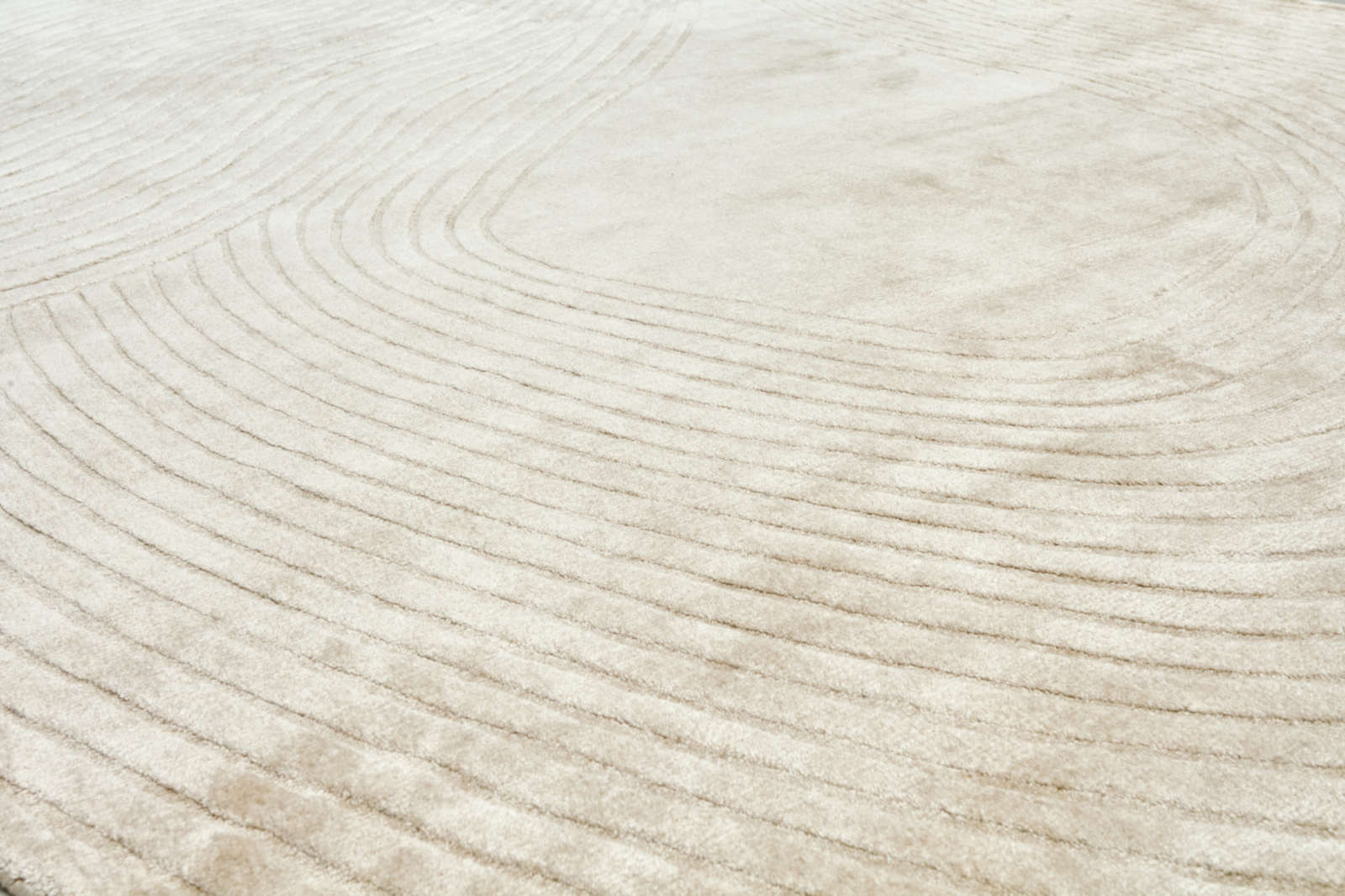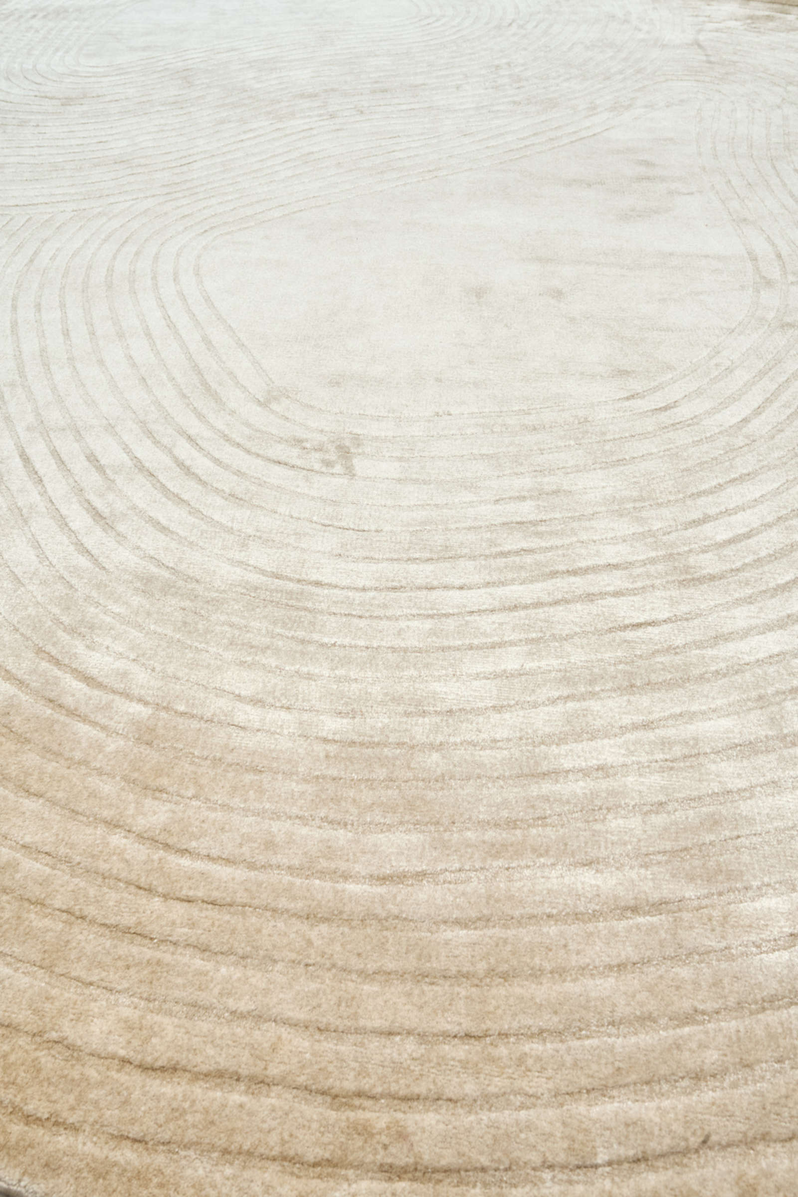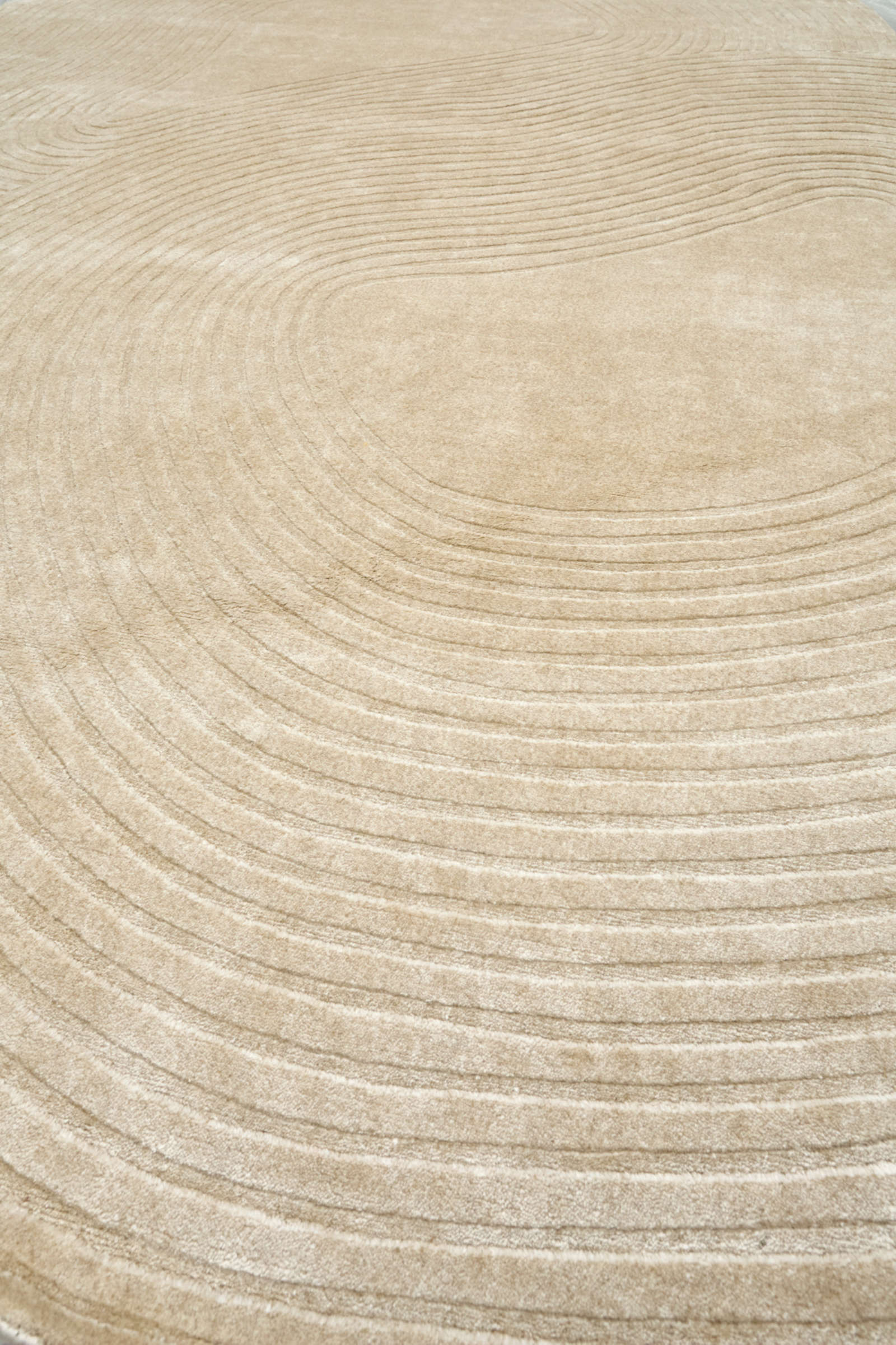 Дизайнерский ковёр из двух пересекающихся овалов с тонкими концентрическими линиями. Его плавные формы и мягкая фактура создают атмосферу спокойствия и гармонии, делая интерьер более пластичным, живым и наполненным естественной красотой.