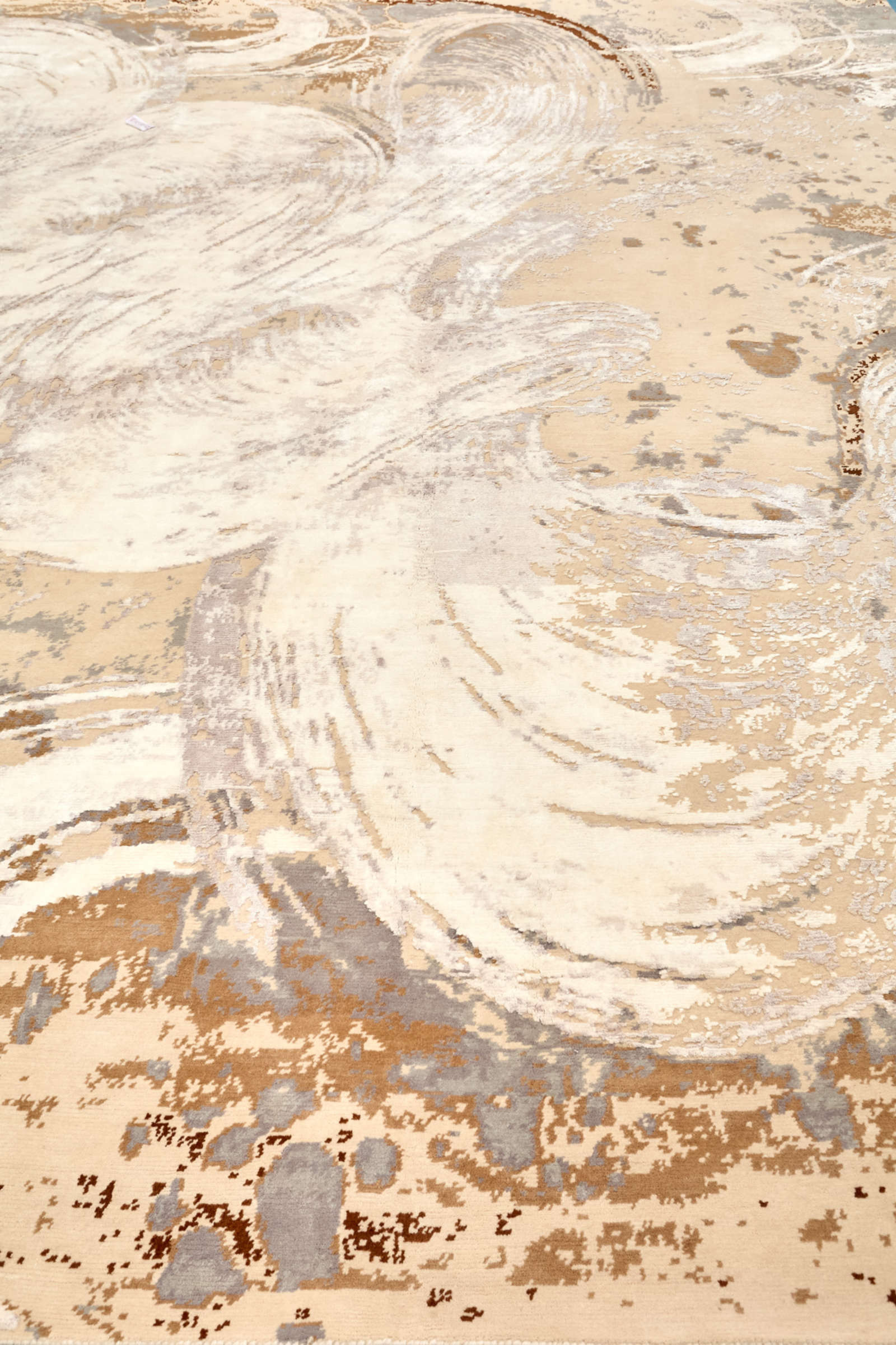 Ковёр, словно написанный широкой кистью на песчаном фоне. Белые и коричневые мазки создают динамику ветра и лёгкость движения.