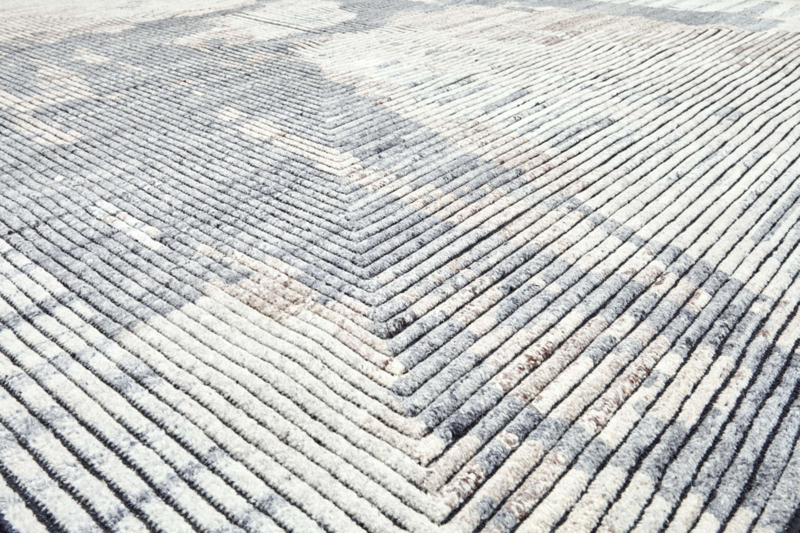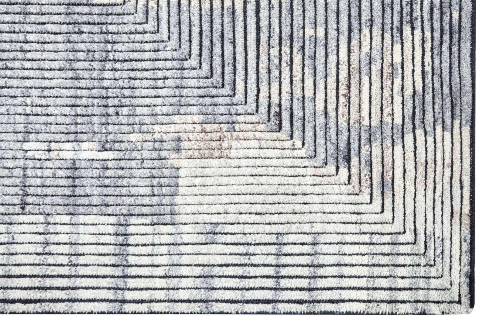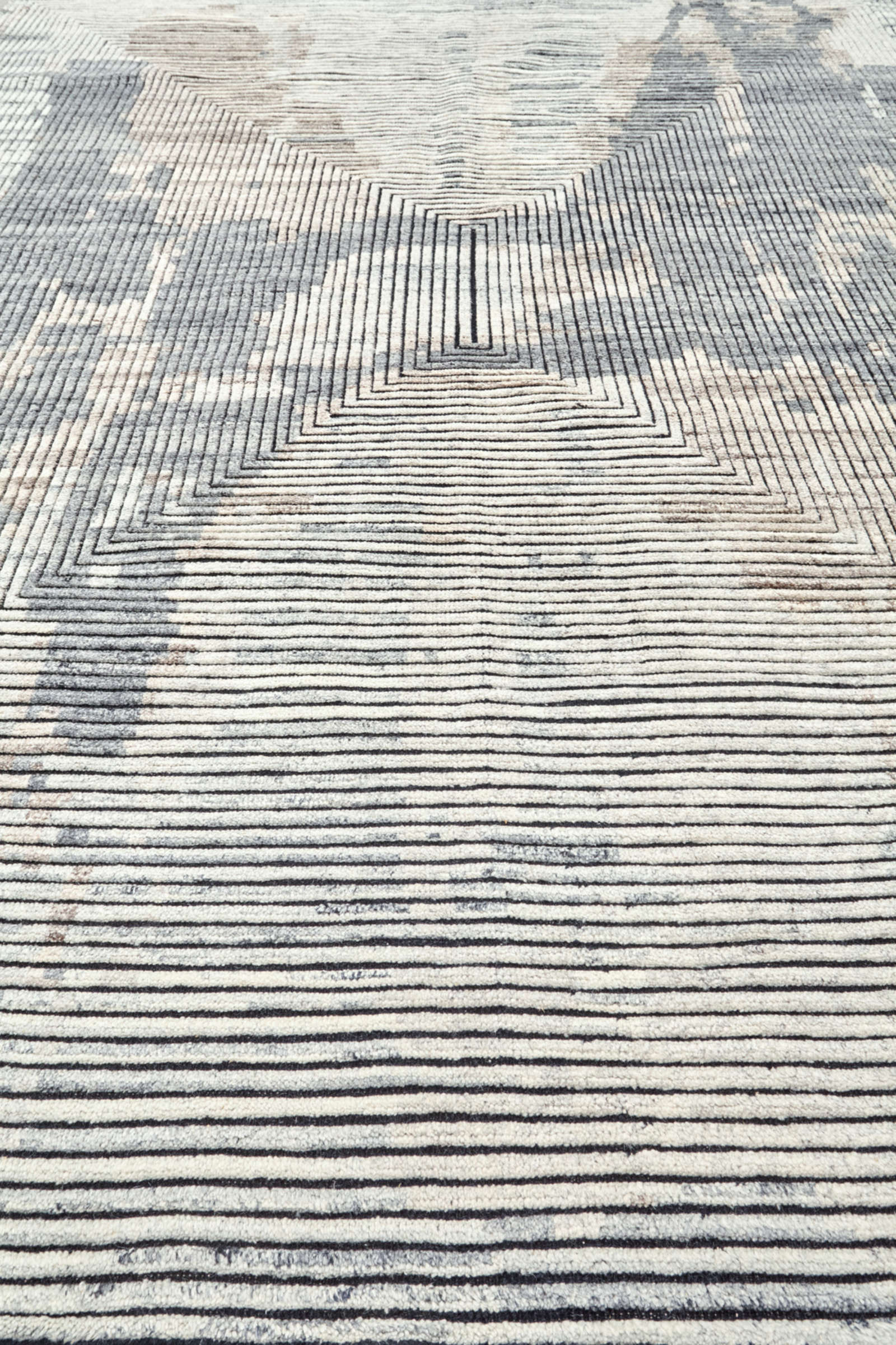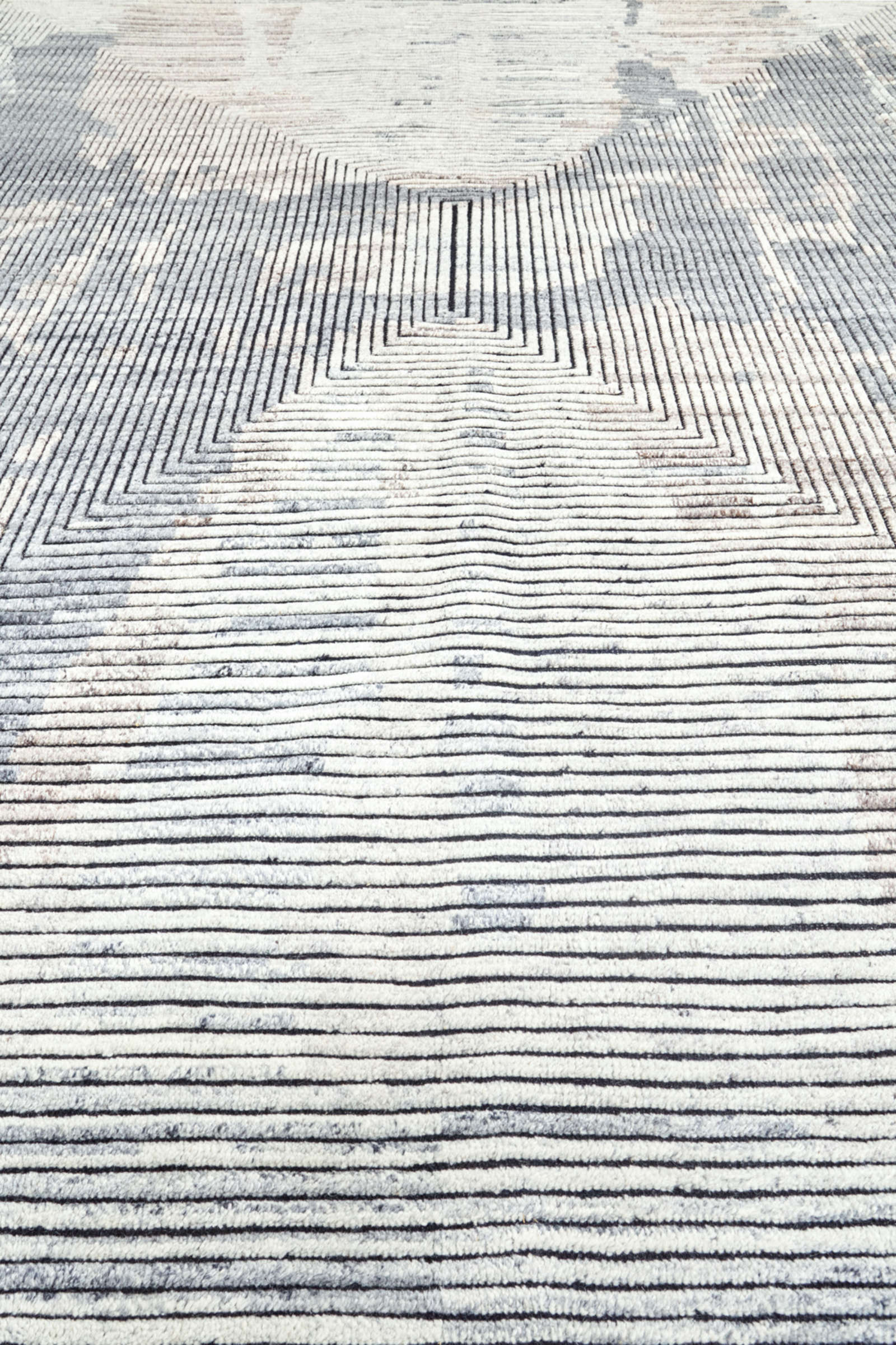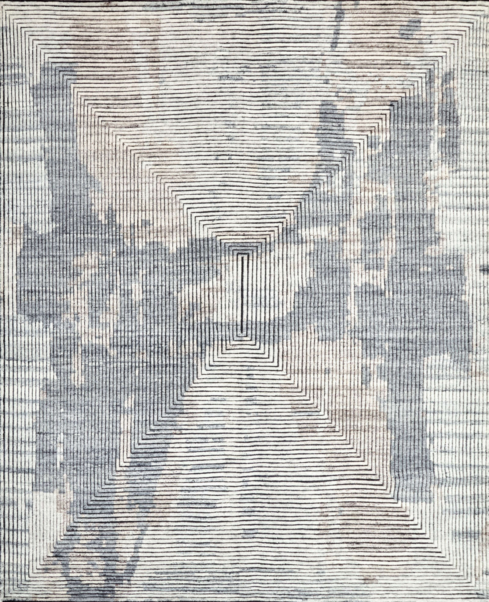 На поверхности ковра линии сходятся к центру, создавая эффект воронки, словно пространство втягивает взгляд внутрь себя. Это напоминает и графику поп-арта, и архитектурный чертёж, где точность линий сочетается с иллюзией движения. Такой ковёр действует на восприятие комнаты: она кажется глубже, динамичнее, и в то же время упорядоченнее. В интерьере он работает как строгий акцент, который не позволяет пространству быть скучным. Особенно хорош он в современных и минималистичных стилях, где важны чёткие формы и ритм. В гостиной такой ковёр станет главным центром притяжения, в кабинете — символом концентрации и сосредоточенности.