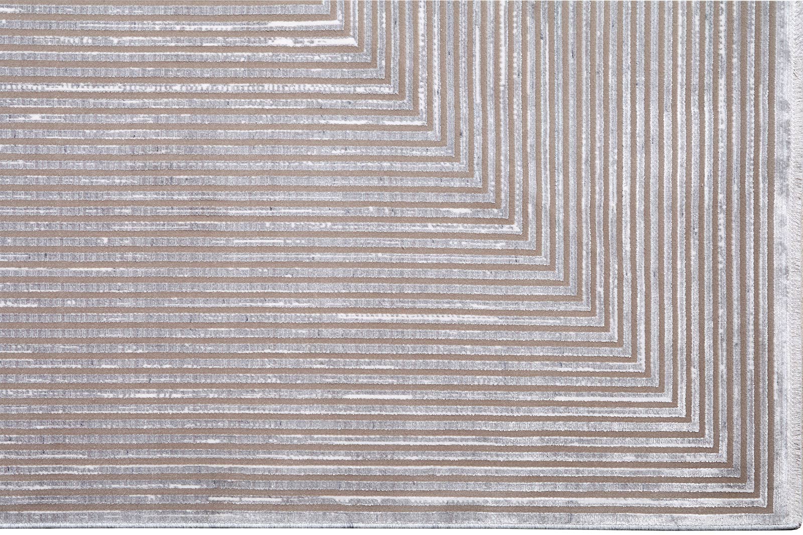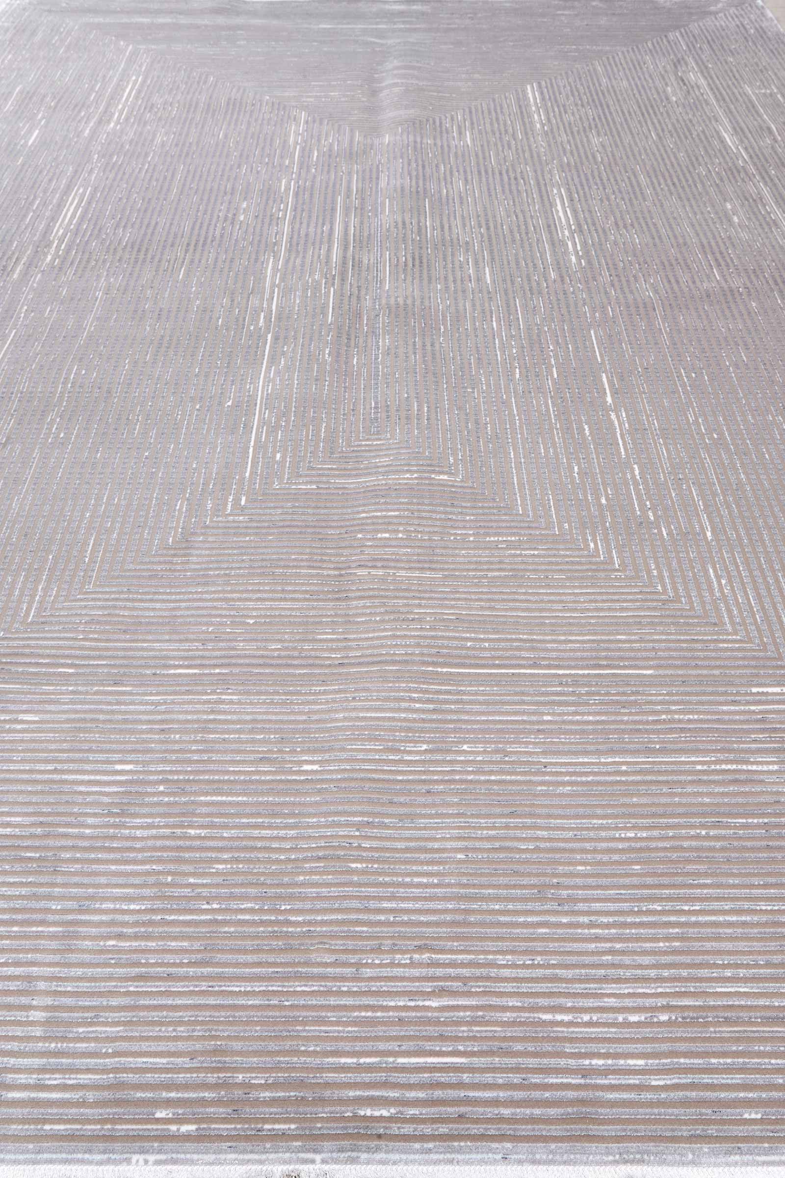 Современный ковёр с графичной композицией из концентрических прямоугольников. Сдержанная серо-бежево-песочная палитра и мягкая фактура создают глубину, подчёркивая архитектурность рисунка и баланс пропорций.